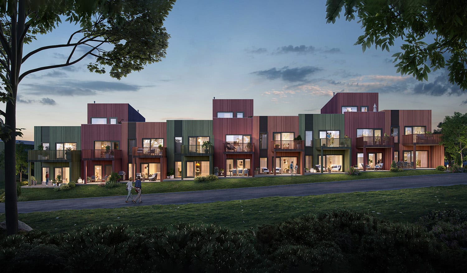 Romslige og familievennlige rekkehus med høy standard og smart bruk av plass – en perfekt base for aktivt familieliv. Boligene har romslig gang med god plass til garderobeløsninger, 3 eller 4 soverom, flere uteplasser og utvendig sportsbod. Den største rekkehustypen har eget vaskerom i tillegg til to bad.